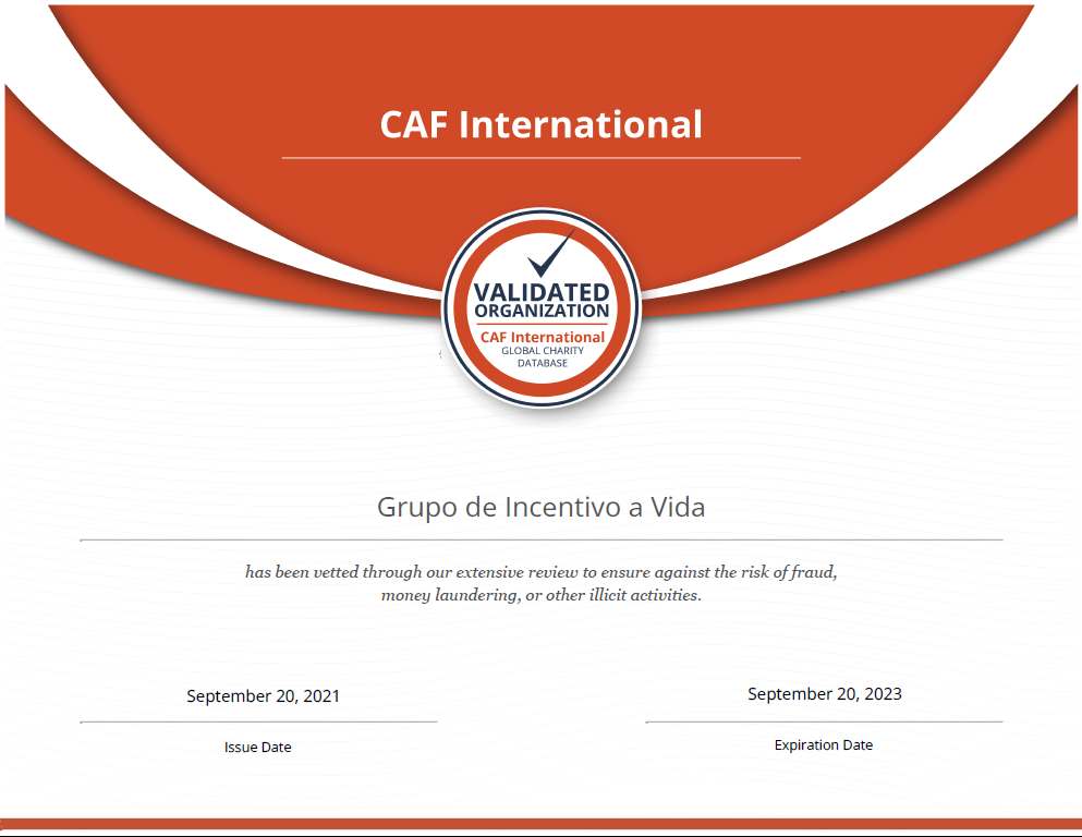 A CAF America certifica o GIV - Grupo de Incentivo à Vida