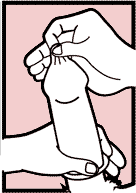 • Apertar a ponta do preservativo enquanto ela é desenrolado para tirar o ar. Se o reservatório destinado ao sêmem estiver cheio de ar, o preservativo pode estourar.
