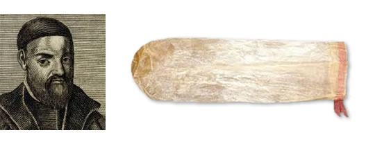 Gabrielle Fallopio e sua invenção: a 'luva de Vênus', nas palavras de Shakespeare.