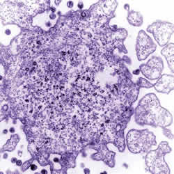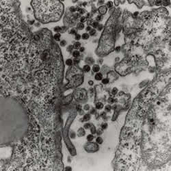Duas fotos do HIV (pequenos pontos pretos), causador da AIDS,